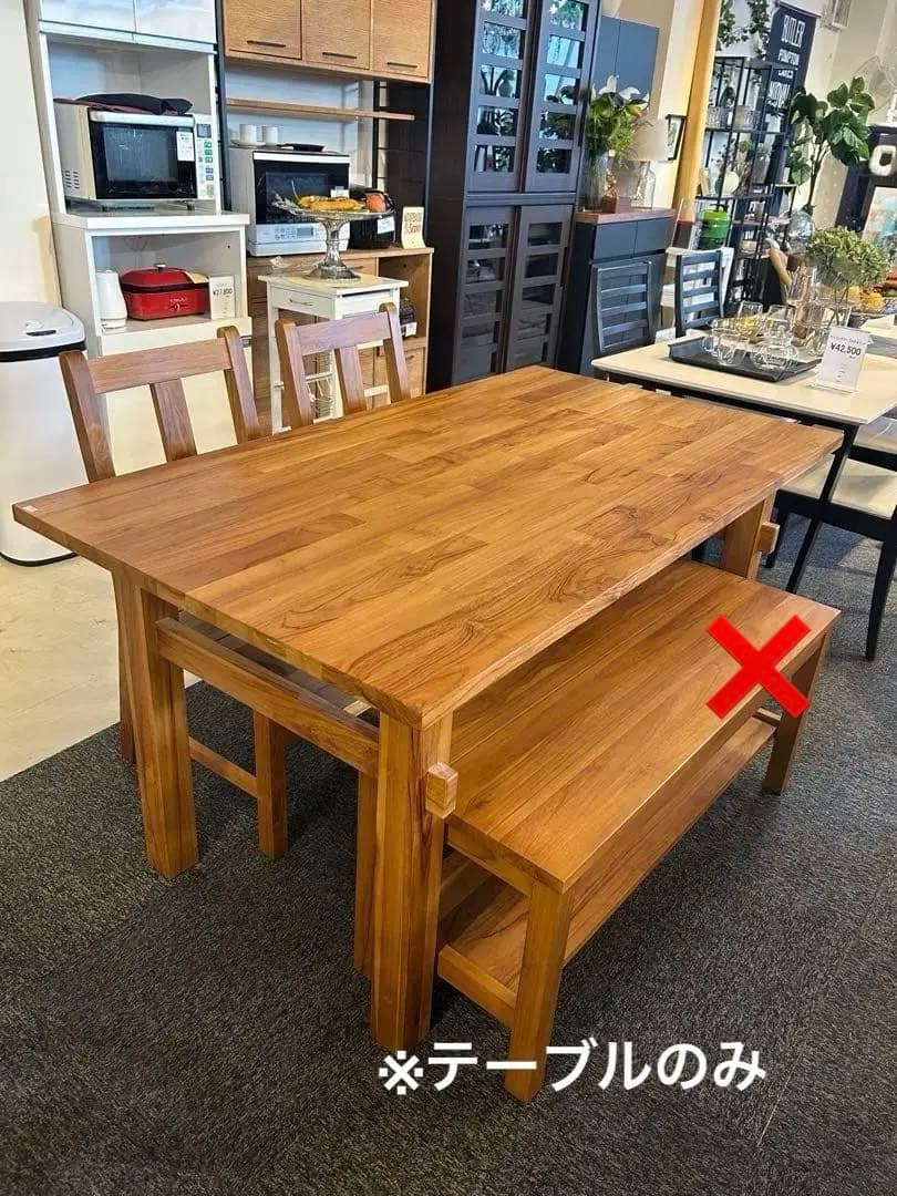 オールドカリモク \r\rW…149cm\rH…65.5cm\rD…78cm\r\r \r画像3枚目、傷あり\r画像4枚目、5枚目、白く変色あり\r\rがたつきなどはございません。\r\r\r千葉県鴨川市 直接お渡し可 \rその場合は¥12000お値引きいたしますので\rご購入前にかならずコメントください。\r\r※同じ種類の椅子、出品あり。チェックよろしくお願いします。\r。\r\r利用人数...4人向け\r天板の形状...角型
